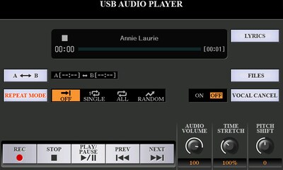 • USB audio playback with time stretch, pitch shift, vocal cancel and MP3 lyrics display functions