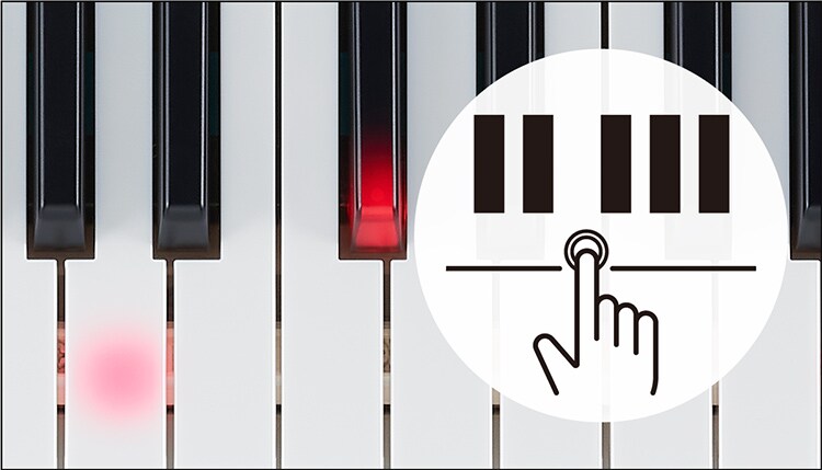 Toca solo las teclas iluminadas y haz música hermosa, de manera natural y sin esfuerzo. Sientes el gusto fácilmente, y es divertido practicar y tocar. Y si quieres mejorar más, practica a tu ritmo con las tres funciones de lecciones. Practica las partes de mano derecha y la mano izquierda y divide la canción en secciones para repetir la práctica. La teclas iluminadas te guían y te ayudan a disfrutar de tocar, incluso si no lees música.