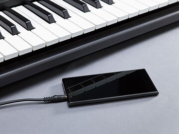 Connect your portable music player to hear your favorite music through the instrument's speakers. Play along and you feel like you've joined the band!
