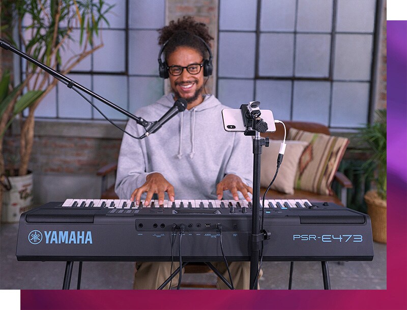 Una variedad de opciones de conectividad brindan todo el apoyo que necesitas para practicar, tocar y actuar. Conecta un micrófono para intentar cantar mientras tocas, usa la aplicación Rec'n'Share para compartir tu música con el mundo y conéctate a los sistemas de megafonía para actuar en el escenario.