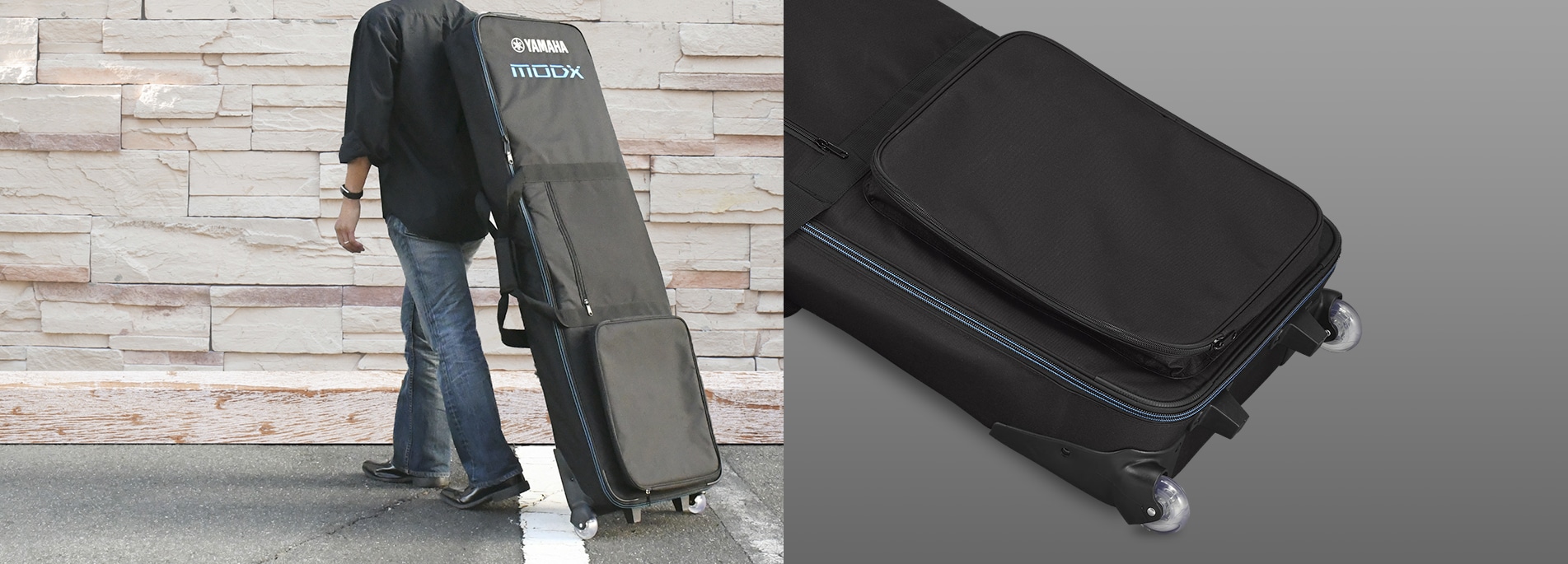 La funda del MODX está fabricado con nylon de primera, cierres de alta calidad, bolsillos para cables y pedales y un lujoso interior que le mantendrá su MODX protegido y con estupendo aspecto por años. el estuche blando para el MODX es protector, liviano y elegante.