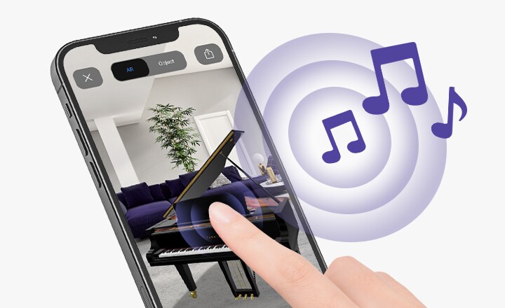 [♪] Toca el modelo 3D para que Piano AR reproduzca el sonido y luego vuelve a tocarlo para detener la reproducción. Ten en cuenta tu entorno cuando utilices este servicio. Es posible que no se pueda escuchar el sonido de este servicio si tu teléfono está en modo silencioso o si el volumen está bajo.