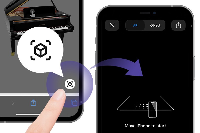 PASO 2 Toca el ícono AR y escanea el área donde te gustaría colocar el piano seleccionado