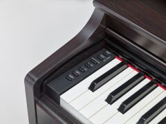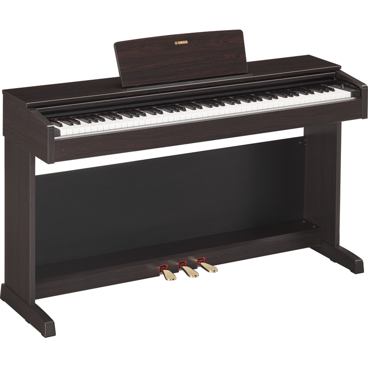 The Yamaha Arius YDP-143 digital piano provides authentic acoustic piano touch and tone suitable for any aspiring pianist. The Graded Hammer Standard (GHS) keyboard action helps build proper finger technique and strength for an easy transition to playing on acoustic pianos. Improved Pure CF Engine delivers expressive, high resolution recordings of the Yamaha CFIIIS concert grand piano. Damper Resonance digitally recreates acoustic piano depth of tone when pedaling, while newly improved reverbs set the stage for you to replicate the feeling of playing in a variety of different environments. With 192 note polyphony, many of the most complex piano compositions can be played without any dropped notes, and the sustained notes ring through faithfully. The Arius YDP-143 is available in either rosewood or black walnut finishes, and the furniture-style cabinet exceeds all expectations of the typical electric piano, lending a classic piano look to any home.