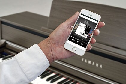 You can play music through the audio system on the Clavinova by using a Bluetooth-enabled smart device. You can stream audio data such as mp3 files. You can enjoy playing along with any songs on your smart device, and you can even share your Clavinova performances.