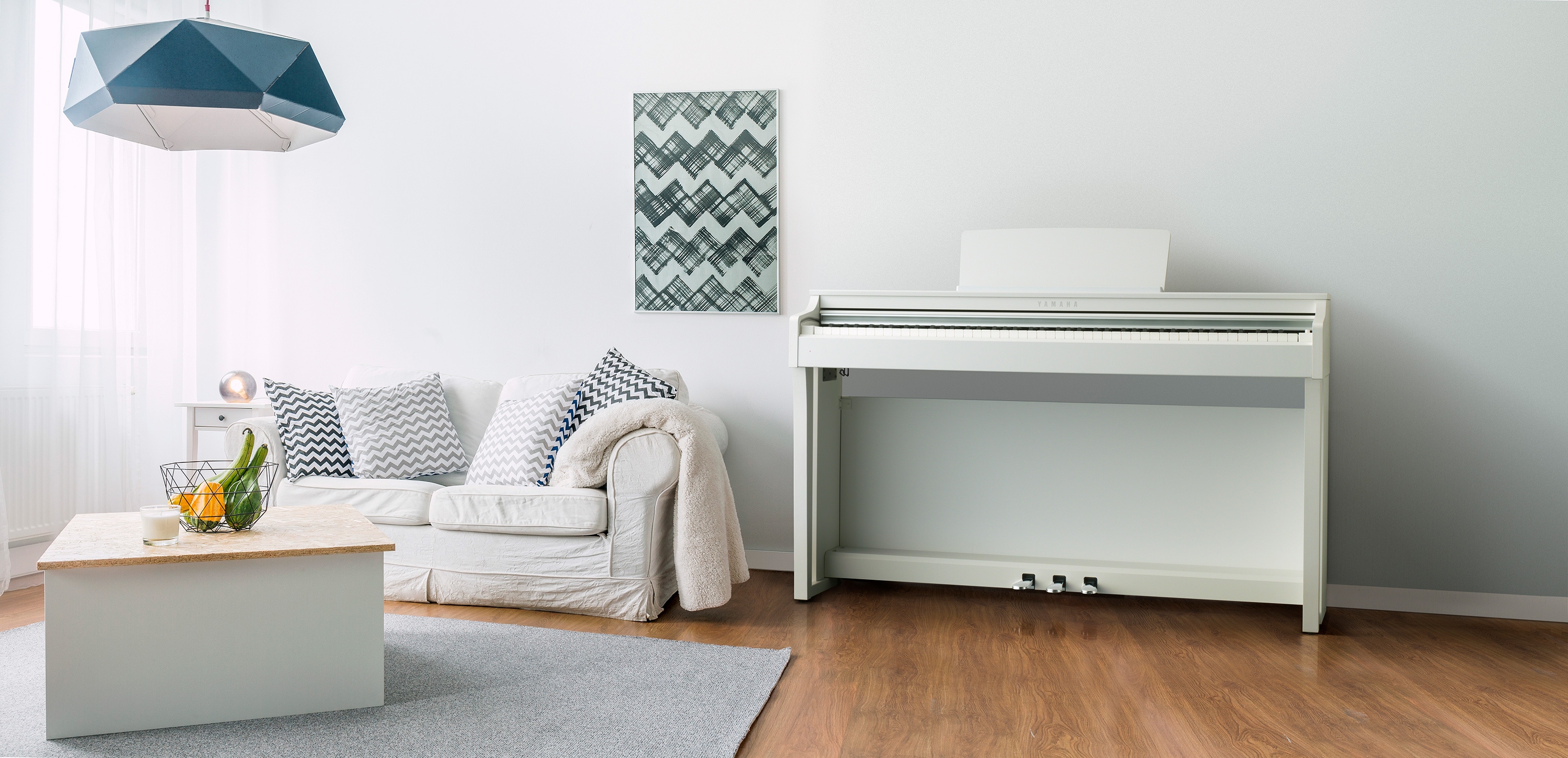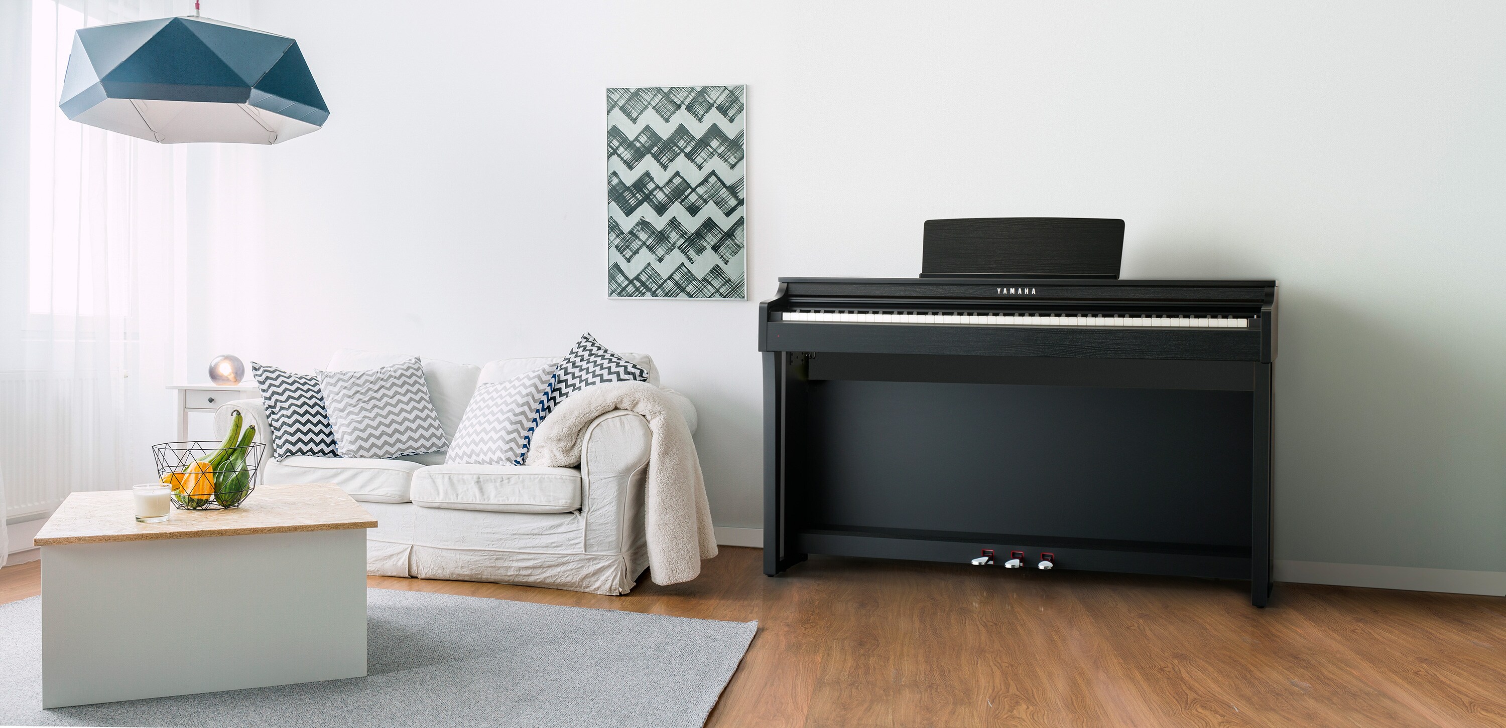 The Clavinova features long, carefully-sampled recordings of notes on a piano, reproduces them in rich detail and utilizes unique Yamaha technologies to achieve smooth tonal transitions in response to the touch of the player.