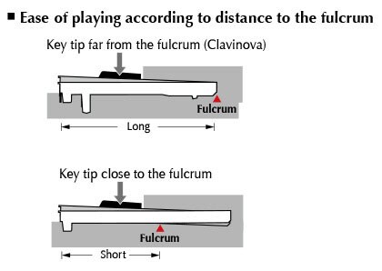Counterweights are embedded in the keys of a grand piano to balance the weight of the hammers and offer more precise control when playing delicately at low volumes. The Clavinova features carefully adjusted counterweights for improved playability when playing pianissimo with a light touch, and better key return in rapid passages. The keyboard of the Clavinova has been fine-tuned to offer optimal balance, emphasizing its superb playability and grand piano response.