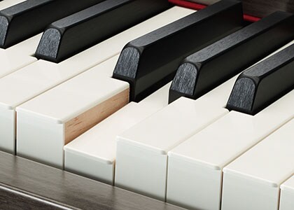 Our fingers are more sensitive than we think, and for pianists, the texture of the piano keys is extremely important. The GrandTouch keyboard features white keys made from the highest quality synthetic ivory, developed independently by Yamaha. The black keys are finished in synthetic ebony. Synthetic ivory keytops reproduce the tactile surface of the real ivory keyboards once used in older acoustic pianos. It features highly absorbent material that prevents fingers from slipping even after hours of practice, while retaining the ideal texture and feel. Resulting from well over a century of experience in making acoustic pianos, this exclusive Yamaha technology achieves a finish that feels natural and comfortable. In addition to the feel, the appearance and fine texture of these keys is unmatched by any other digital piano, and is sure to inspire pianists from the moment they experience it.