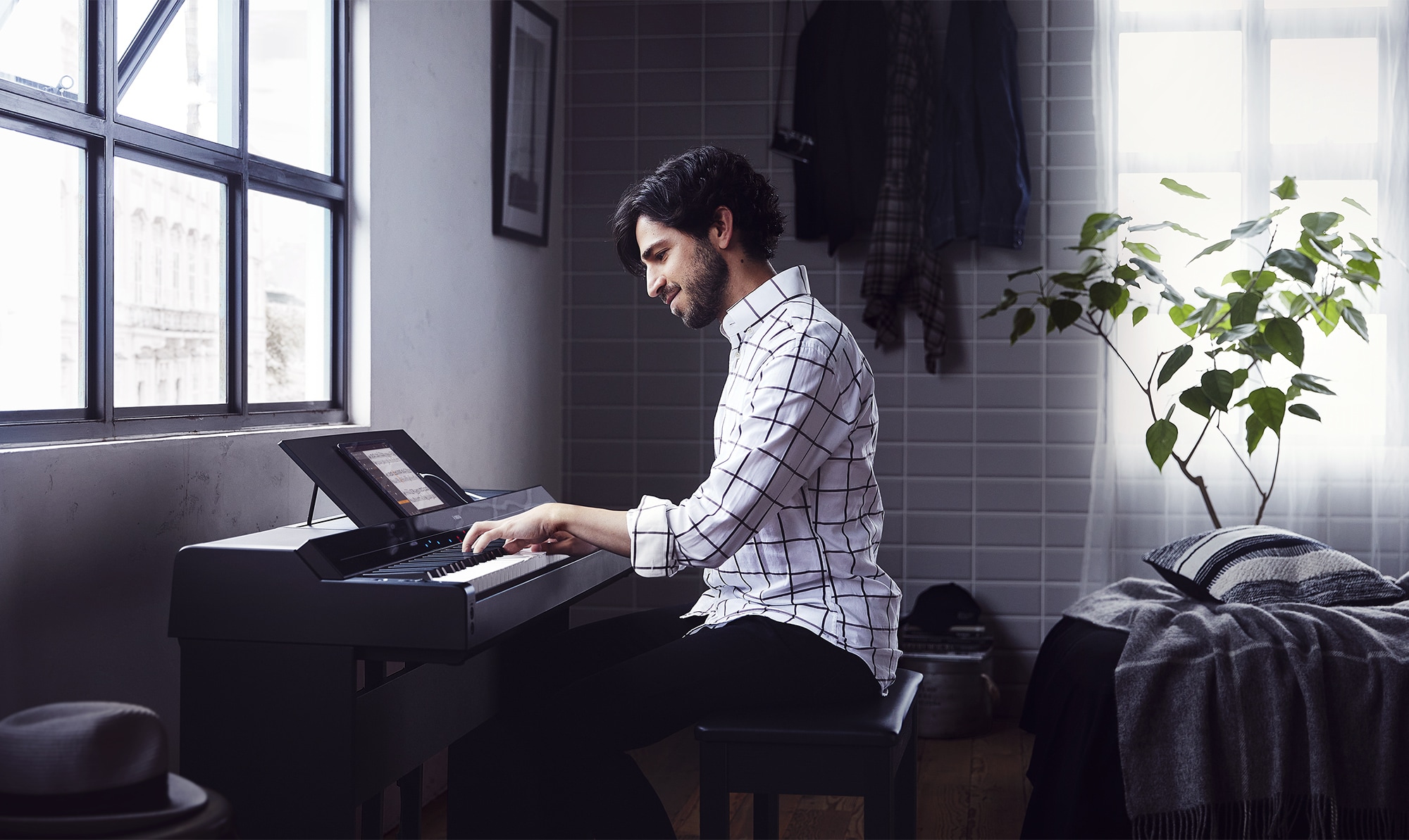 Conecta el instrumento a un dispositivo inteligente y utiliza la aplicación exclusiva Smart Pianist para acceder a todos los controles de instrumentos y a las herramientas de configuración. También puedes disfrutar de funciones potentes como partituras de piano generadas por la aplicación de tus canciones favoritas para aprenderlas y tocarlas.