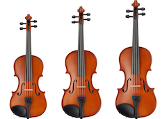 Nuestro violines de tamaño a escala se fabrican y acaban a mano para dar a los músicos jovenes un instrumento de calidad intransigente para empezar. Estos violines usan diseños originales que producen un rendimiento a muy buen costo y fiabilidad excepcional, que sumado a la calidad superior le da tranquilidad a los padres.