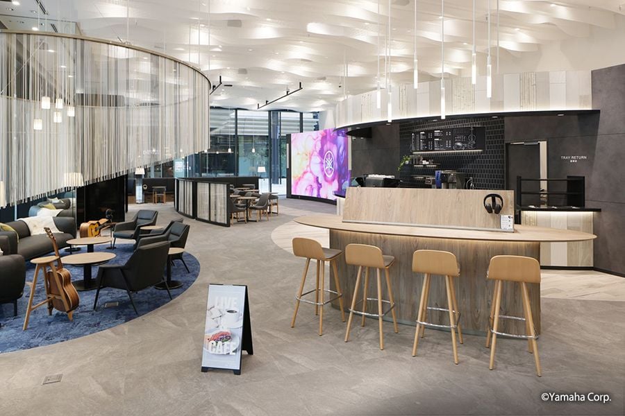 Aprovechando la concurrida ubicación de Yokohama Minato Mirai, el nuevo escaparate de Yamaha está diseñado para atraer a las personas a una experiencia acogedora, cómoda y estimulante que despierta la curiosidad y el interés por tocar música.