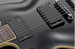 Equipada con pastillas activas EMG 85/81, responde a la necesidad de incorporar una guitarra que rinda al máximo en regímenes de alta ganancia. Letalmente silenciosa en reposo, desgrana riffs con fiereza y gran definición. Las pastillas ofrecen una variedad tonal muy amplia, destacando por su claridad. Su cuerpo de caoba extremadamente resonante expande su sonoridad a otro nivel, generando atmósferas con tintes emocionales únicos. El hardware de níquel negro, los potenciómetros metálicos y sus inlays contemporáneos acentúan su agresiva imagen. La figura floral de la pala se ha modernizado y se presente de forma casi tribal.