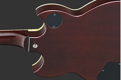 La legendaria combinación de cuerpo de caoba y tapa de arce de las SG, con su doble cutaway, se mantiene intacta en el cuerpo de las SG serie 1800, diseñados para adaptarse a las necesidades de los guitarristas de Rock de hoy en día. La curva arqueada de la tapa de arce es más pronunciada que en series anteriores, mientras que el centro del cuerpo posee un ratio de madera / masa óptimo para maximizar la vibración tímbrica y transmitirla con toda su riqueza a través del puente. El ángulo de arqueo de la tapa respeta el equilibrio de volúmenes de la guitarra y acentúa el impresionante diseño de la misma.