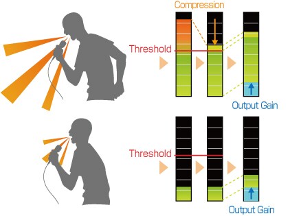 Un ingeniero experimentado puede utilizar un compresor para impulsar el sonido a un nivel superior de excelencia, y hacer que una guitarra tenga más presencia, que una línea de bajo tenga más ponche, una tarola más impacto y una voz con más claridad. Sin embargo, el uso indebido de un compresor puede debilitar la dinámica del sonido. El compresor de una perilla de Yamaha reune las técnicas de un ingeniero experimentado en un mando único. Sin necesidad de aprender nombres difíciles o principios de funcionamiento y sin necesidad de conectarse a un compresor por primera vez, esto aplica el efecto de compresión ideal tanto para una voz como instrumentos, dando un toque profesional al sonido. Si está usando una mezcladora Yamaha como la MG20XU que está equipada con un compresor de una perilla, puede aprovecharlo para la mezcla.