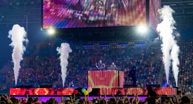 Each year the GelreDome - home of Dutch football club Vitesse Arnhem - is transformed into a huge centre of Christian worship by the EO-Jongerendag (Evangelical Broadcasting Youth Day) event. With 25,000 young people enjoying a range of Christian music and sermons in a huge ‘in the round’ production, two Yamaha RIVAGE PM10 digital mixing systems ensured that the message was clearly heard.