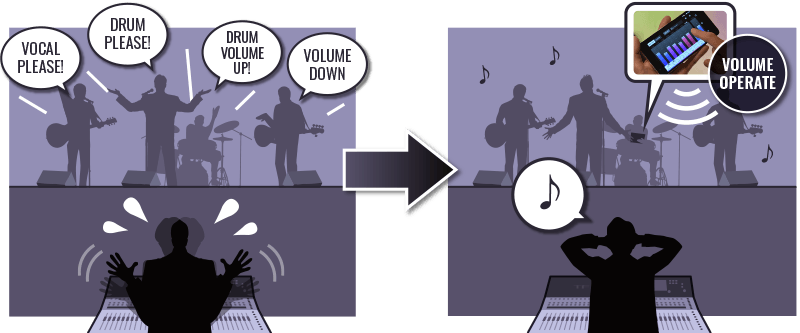 Se pueden conectar hasta diez aplicaciones MonitorMix por consola y estas permiten a los músicos en el escenario controlar independientemente su propio nivel de monitor.