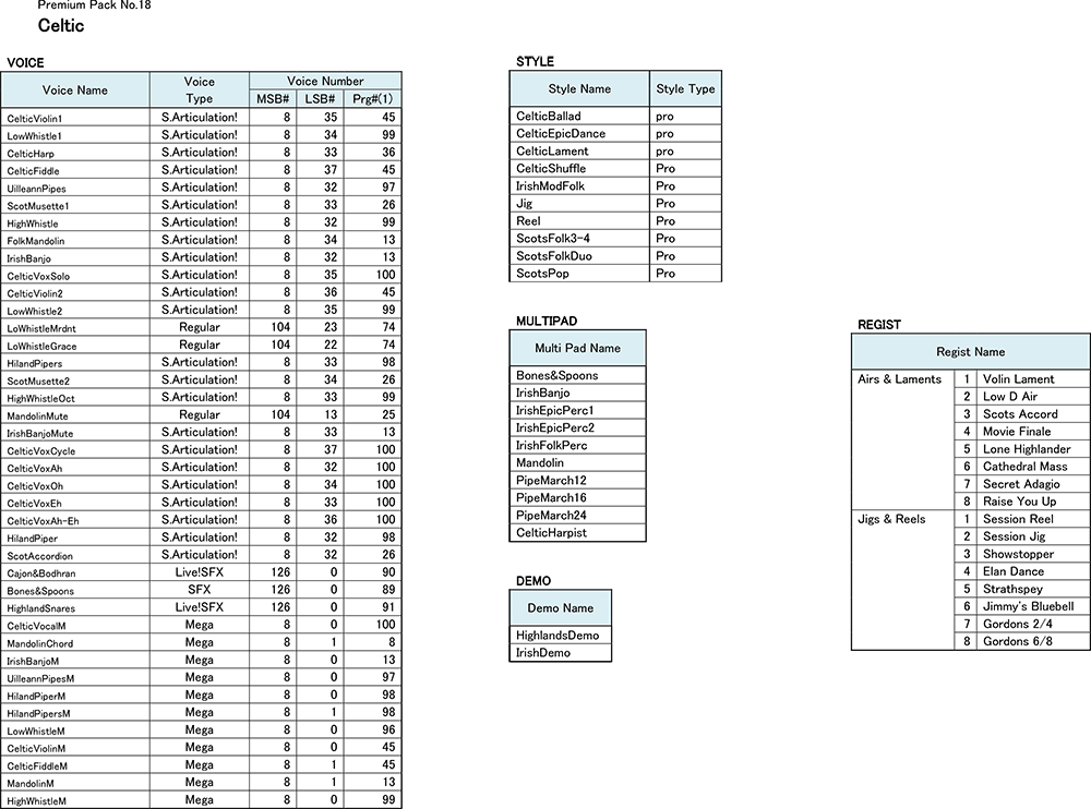 From traditional Irish and Scottish folk music to Celtic-influenced movie soundtracks, the Celtic pack has it covered. Featuring a brand new pallet of high quality Voices including whistles, pipes, fiddles, and accordions along with new Styles, Multipads and Registration Memories, the Celtic pack is a powerful addition, whether you play your keyboard at home or on stage.